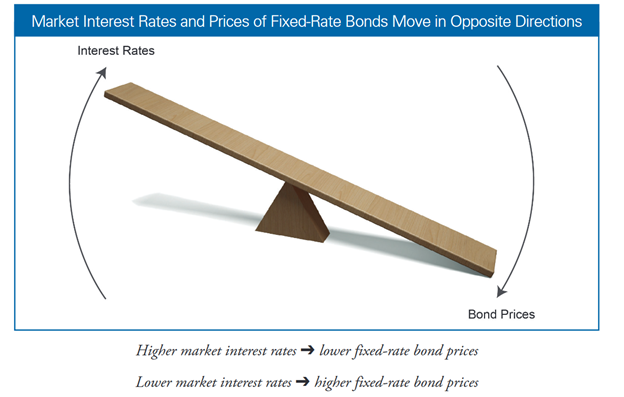 • Not quite so obvious is the effect on investment positions in bond holdings. As rates rise, the fixed interest rate on a bond means that its price falls to match current market rates of return on a purchase of that bond.